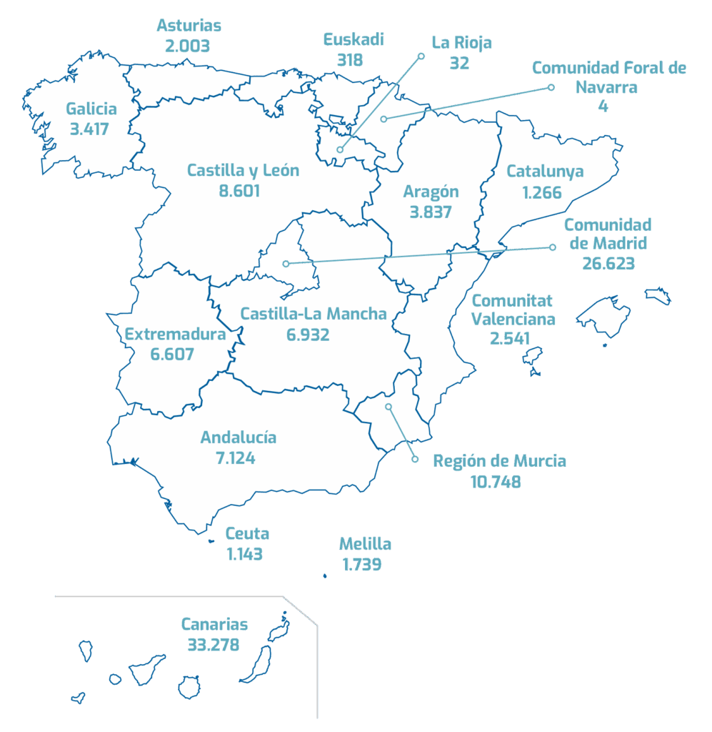 Estamos presentes en 43 municipios de todo el territorio del Estado español, distribuidos en 14 comunidades autónomas y 39 provincias, así como en las ciudades autónomas de Ceuta y Melilla.